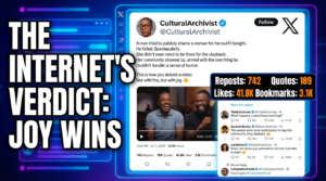 Commenters on X delivered the verdict: “He went out rage-baiting where he knew he wouldn’t get any real static and got boisterous for clicks. Ultimately, not getting his desired reaction and being laughed at the whole way. Bravo!” Another wrote: “I’m hollering, he got nothing. Shout out to these two Black kings for keeping their composure.”