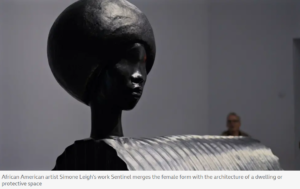 Next, the group encounters a sentinel. Simone Leigh’s glossy black sculpture rises, a formidable fusion of the female form with architectural dome—a body that is also a shelter, a head that is also a watchtower. Nadia invites speculation: “A tunnel?” suggests one voice. “A bomb shelter,” offers another. This collaborative naming is a ritual of reclamation.